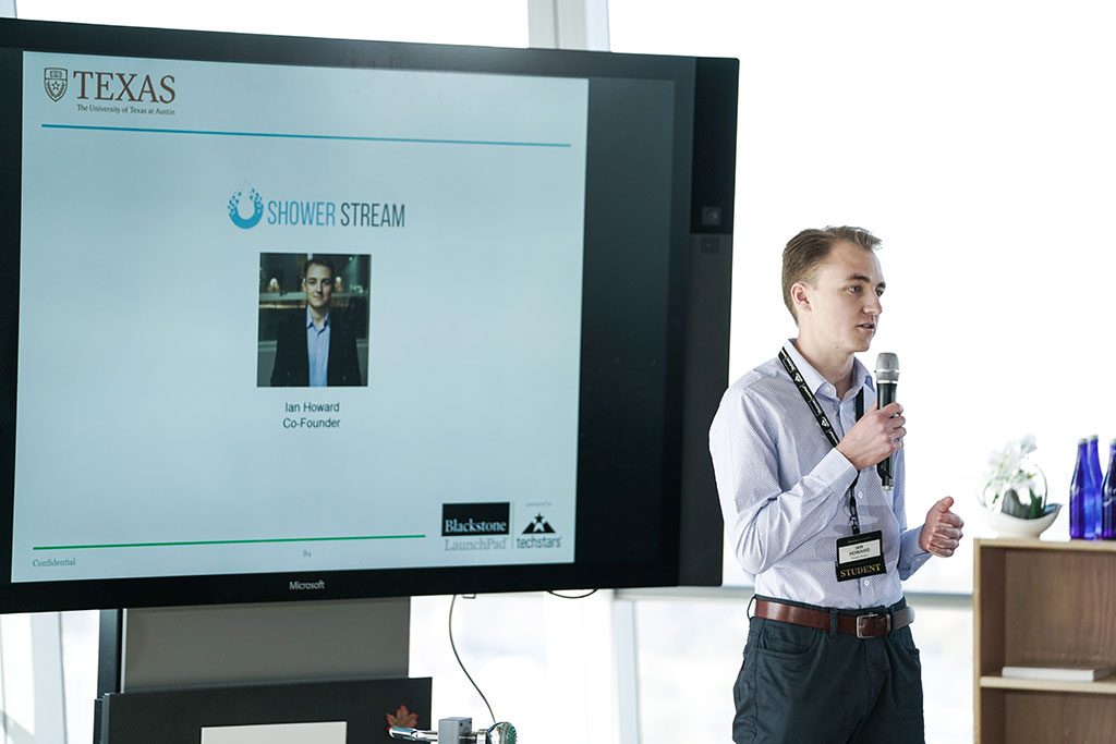 Ian Howard, a mechanical engineer and recent graduate of The University of Texas at Austin, was recently invited to attend the Blackstone LaunchPad Training Camp in New York City on behalf of Shower Stream, where he made a pitch to a team of Blackstone and Techstars executives.